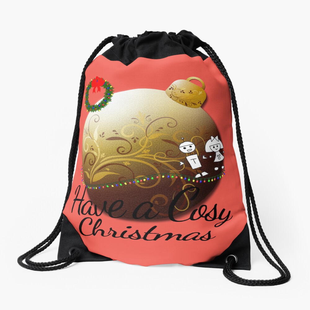 Bag Hidemi Woods Holidays Have a Cosy Christmas with HKo and TRobot by Hidemi Woods Drawstring Bag e 2023年10月13日